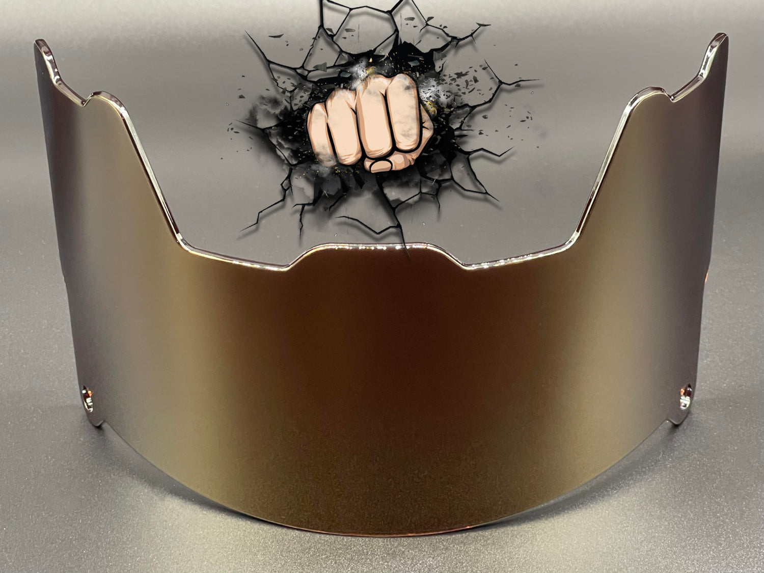 Full Size UV Coated Chrome Mirror Helmet Visors for Display ONLY! These visors are chrome plated in the same process of chrome helmets. Some imperfections may be present but not very common and display excellent.