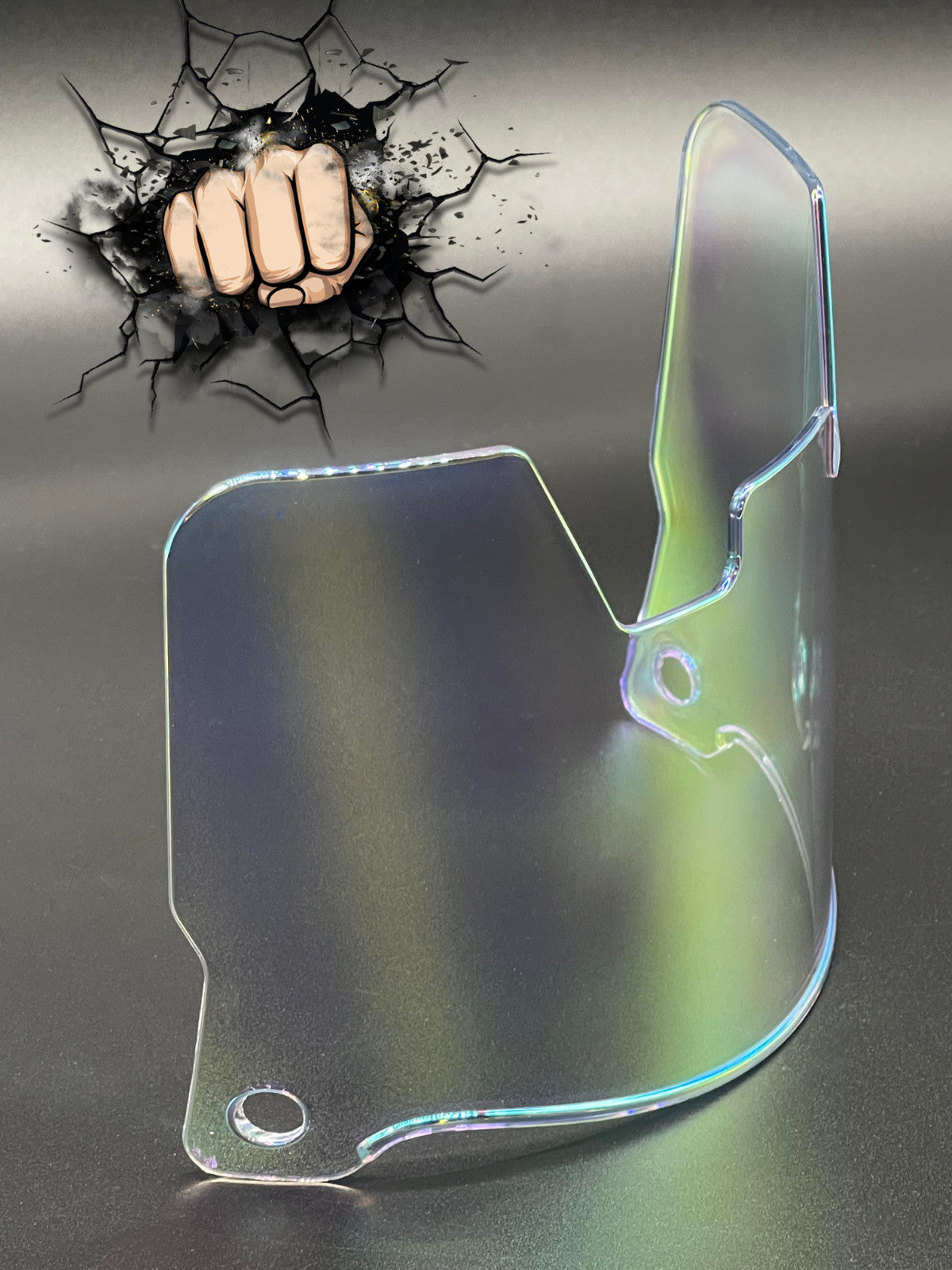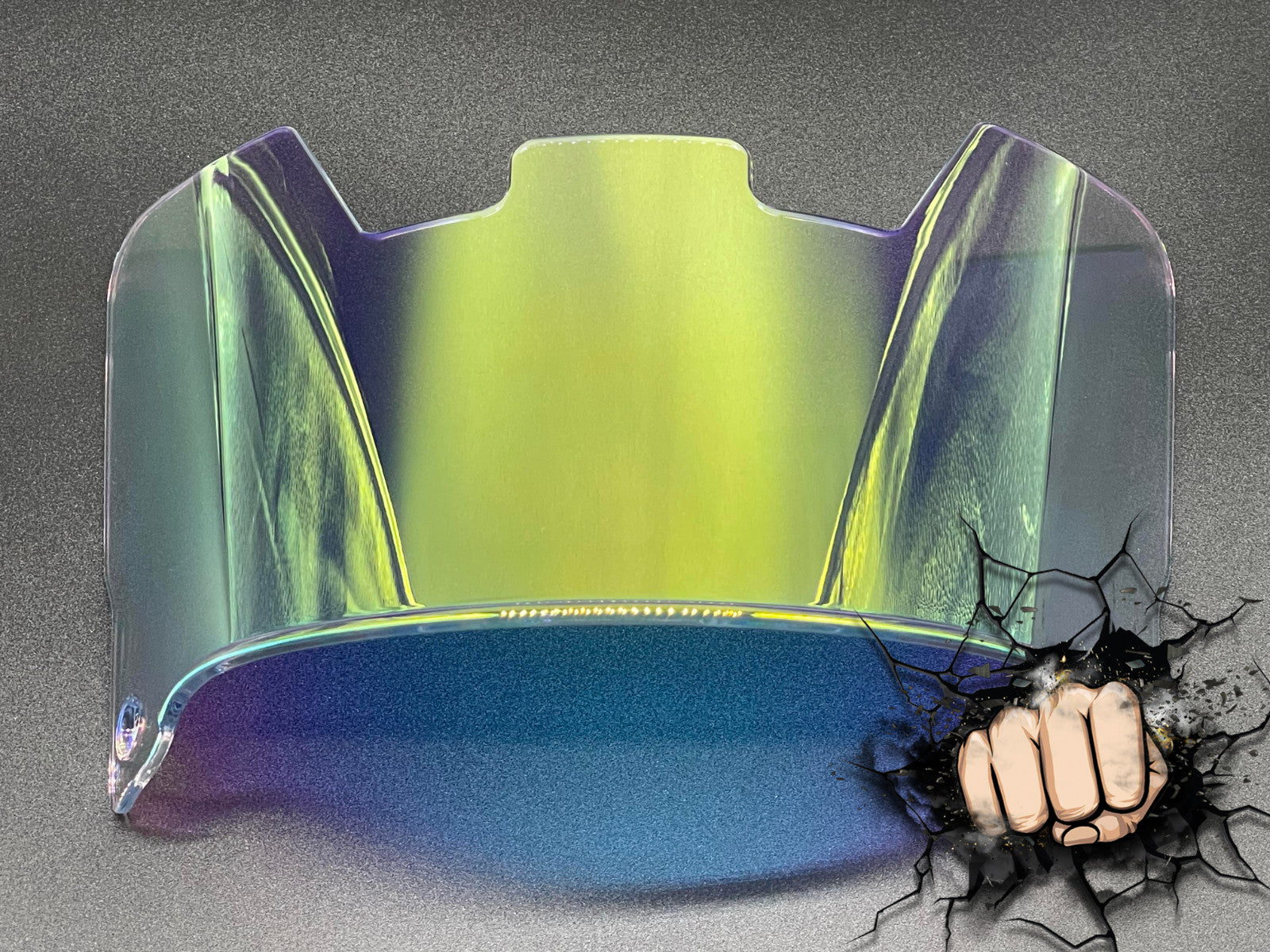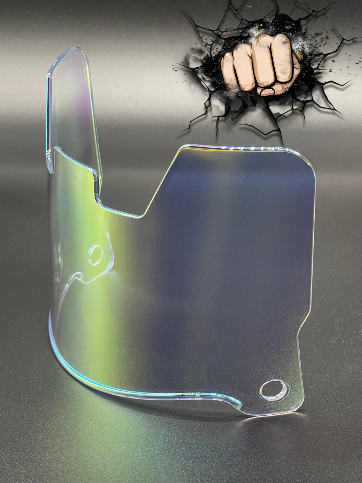 This full size helmet visor is perfect for any football player on the field looking to stand out! With a metallic chrome mirror finish, it adds a touch of style to your game day gear. Visor is scratch resistant and shatterproof for the ultimate combination of versatility in protection and added visibility from the elements. Unbranded UA clips are included to complete install. This is a one size fits all full size helmets, Riddell. Schutt, etc.