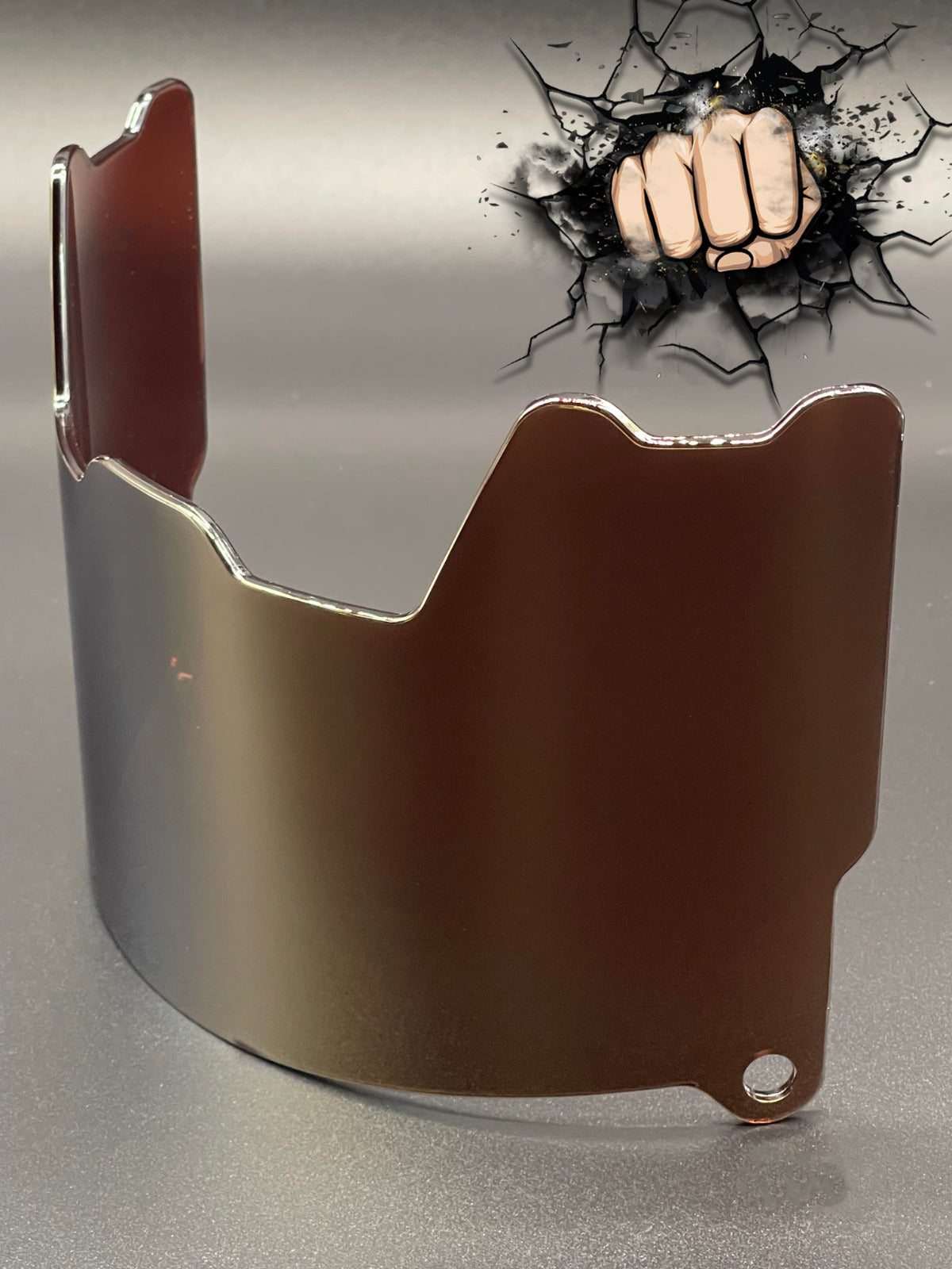 This full size helmet visor is perfect for any football player on the field looking to stand out! With a metallic chrome mirror finish, it adds a touch of style to your game day gear. Visor is scratch resistant and shatterproof for the ultimate combination of versatility in protection and added visibility from the elements. Unbranded UA clips are included to complete install. This is a one size fits all full size helmets, Riddell. Schutt, etc.