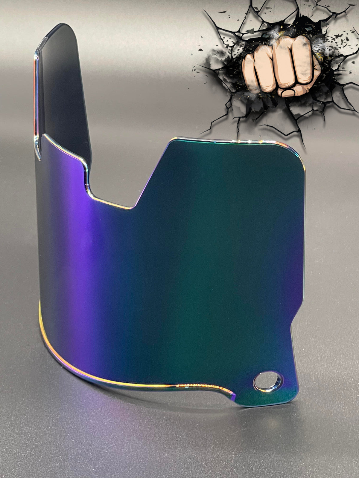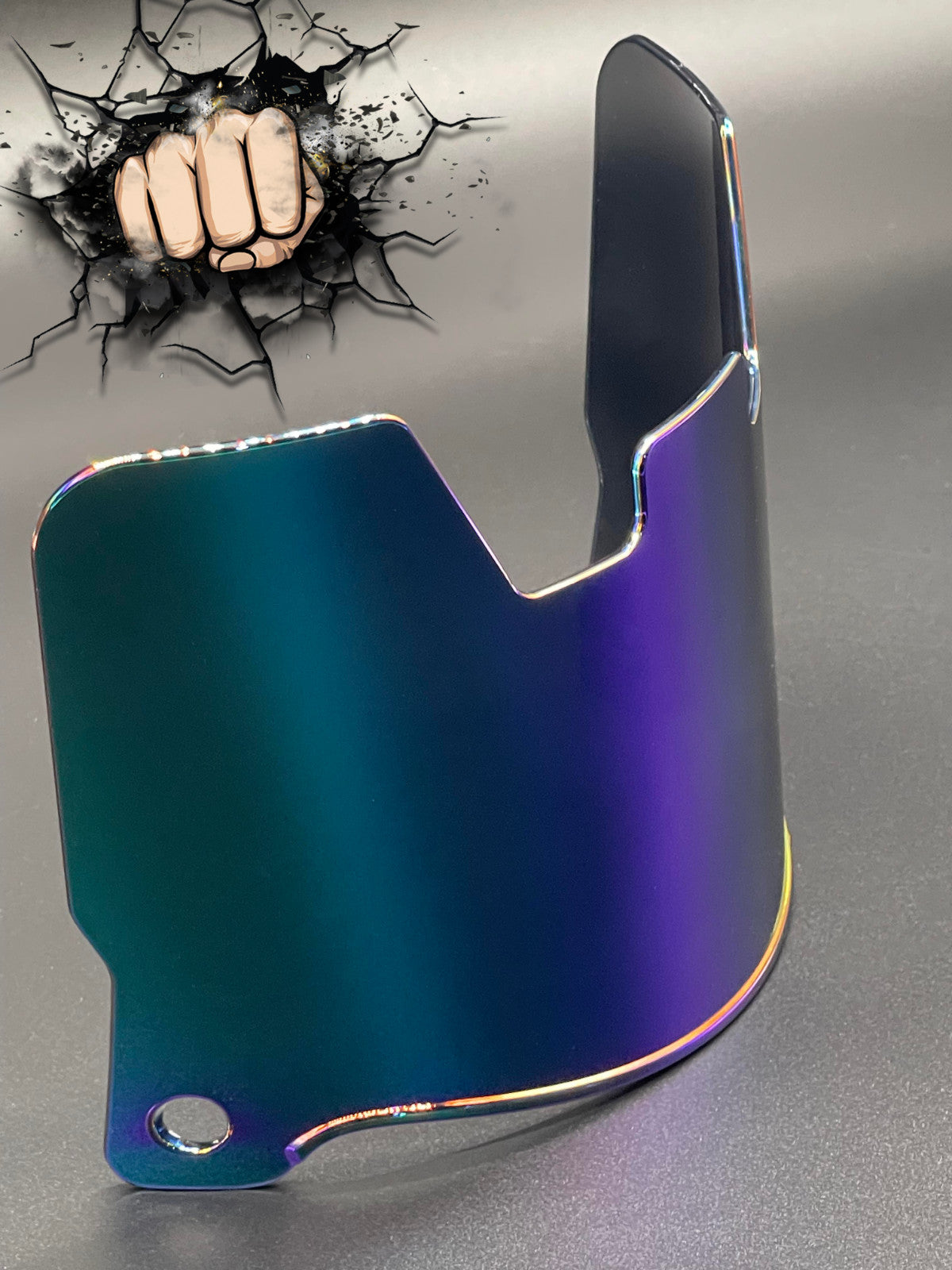 This full size helmet visor is perfect for any football player on the field looking to stand out! With a metallic chrome mirror finish, it adds a touch of style to your game day gear. Visor is scratch resistant and shatterproof for the ultimate combination of versatility in protection and added visibility from the elements. Unbranded UA clips are included to complete install. This is a one size fits all full size helmets, Riddell. Schutt, etc.