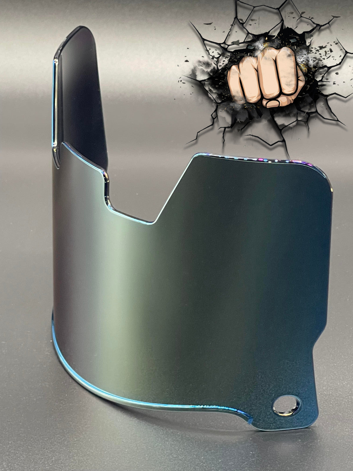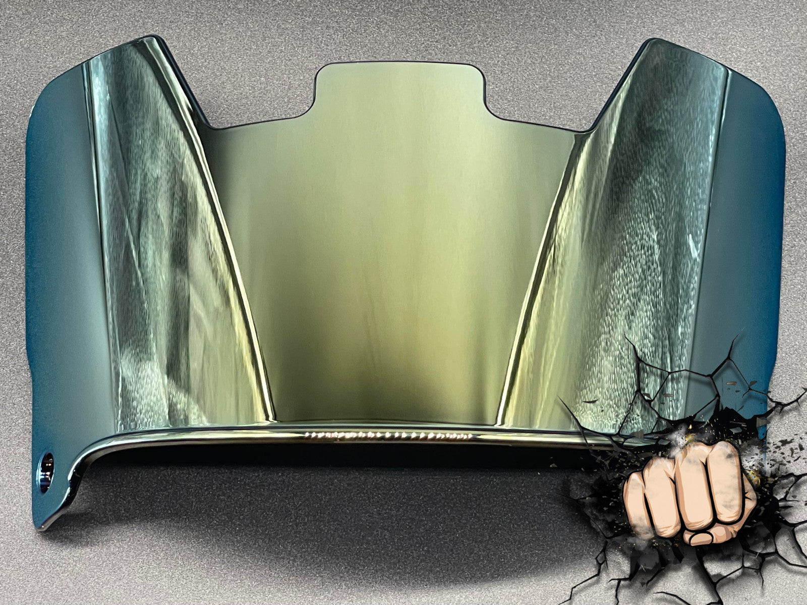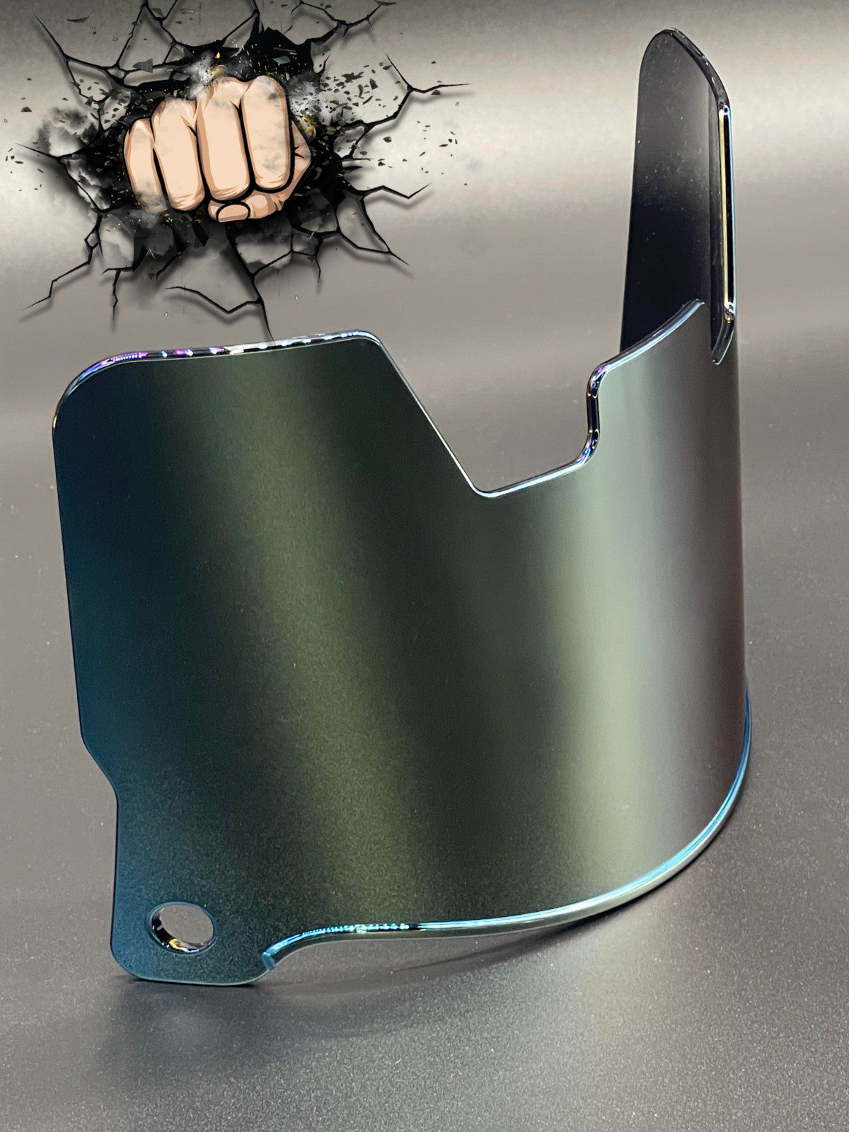 This full size helmet visor is perfect for any football player on the field looking to stand out! With a metallic chrome mirror finish, it adds a touch of style to your game day gear. Visor is scratch resistant and shatterproof for the ultimate combination of versatility in protection and added visibility from the elements. Unbranded UA clips are included to complete install. This is a one size fits all full size helmets, Riddell. Schutt, etc.