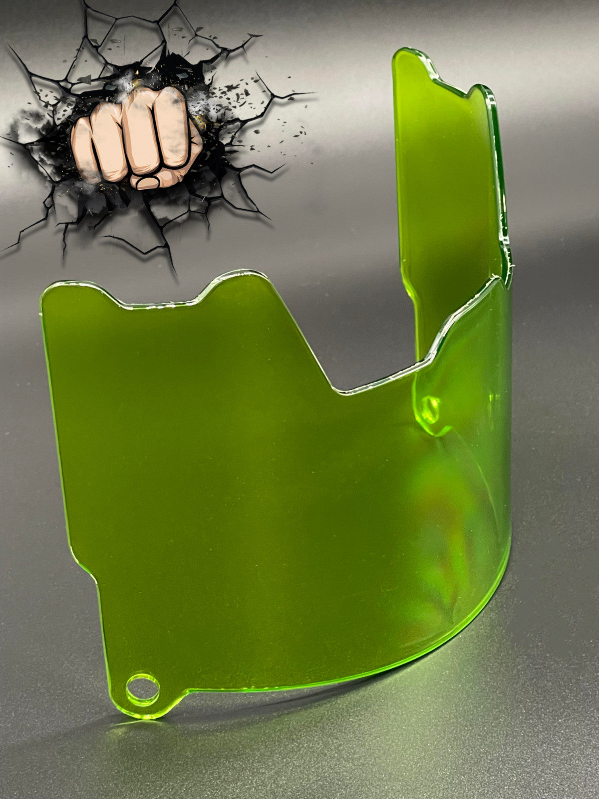This full size helmet visor is perfect for any football player on the field looking to stand out! This could be the perfect color to add a touch of style to your game day gear. Visor is scratch resistant and shatterproof for the ultimate combination of versatility in protection and added visibility from the elements. Unbranded UA clips are included to complete install. This is a one size fits all full size helmets, Riddell. Schutt, etc.
